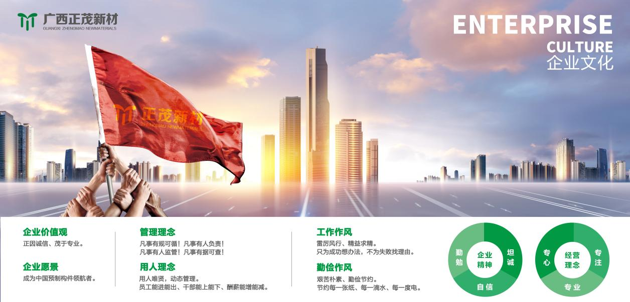 正茂集團(tuán)是一家專業(yè)從事高端混凝土研制的高新技術(shù)企業(yè),創(chuàng)建于2007年,自主研發(fā)混凝土制品30余種,擁有國家級(jí)專利20余項(xiàng),經(jīng)營范圍以新型環(huán)保建筑復(fù)合材料及裝配式建筑預(yù)制構(gòu)件為主體。2019年7月,正茂集團(tuán)正式簽約入駐馬山縣蘇博工業(yè)園區(qū),投資建設(shè)以高鐵、地鐵、市政、電力、水利及裝配式建筑構(gòu)件等為主的生產(chǎn)線項(xiàng)目。...